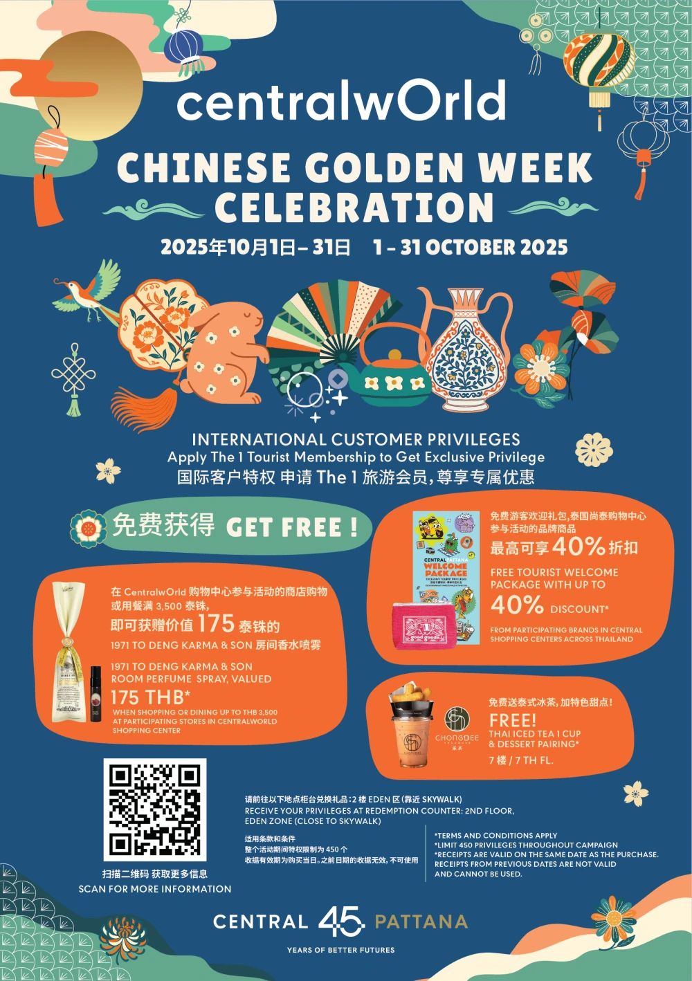 在 centralwOrld 购物中心参与活动的商店购物或用餐满 3,500 泰铢, 即可获赠价值 175 泰铢的 1971 To Deng Karma&Son 房间香水喷雾