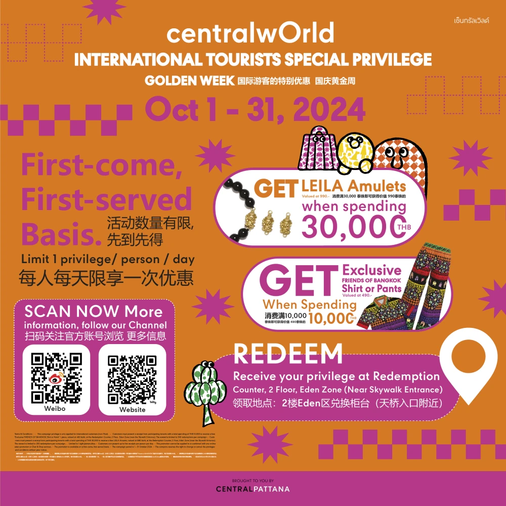 INTERNATIONAL TOURISTS SPECIAL PRIVILEGE Golden Week 国际游客的特别优惠 黄金周 | centralwOrld